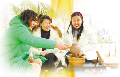 河南栾川县,游客在畔山民宿围炉煮茶。东说念主民日报记者 朱佩娴摄