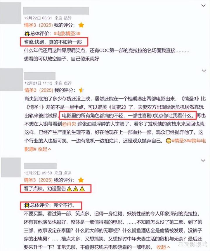 不异坐不住的还有《情圣3》,可是这部电影开启点映后,口碑却走向了“崩盘”: