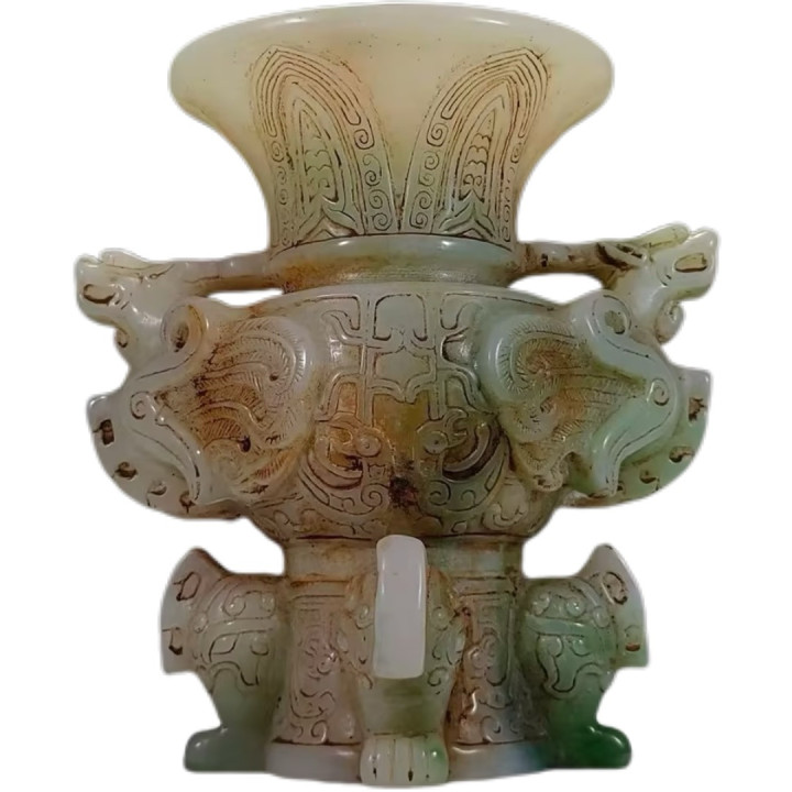在中华玉器保藏的 “价值殿堂” 中,翠青和田玉龙凤尊如合并尊 “玉质神祇”—— 以 18.5cm 的器高、17.5cm 的幅宽与 4.3 斤的分量,铸就清代玉雕的工艺巅峰,更凝结着数百年玉文化的价值内核。这件翠青和田玉雕尊,每一点翠色的流转、每一处龙凤的雕饰,都是解读中国玉艺价值与保藏逻辑的黄金钥匙。从清代宫廷造办处的匠心独运,到民国藏家的倾囊追捧,再到现代保藏的顶级占位,翠青和田玉的价值早已冲破玉石的物理属性,成为艺术保藏与文化传承的双重图腾。