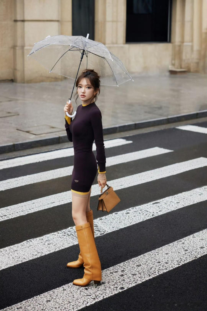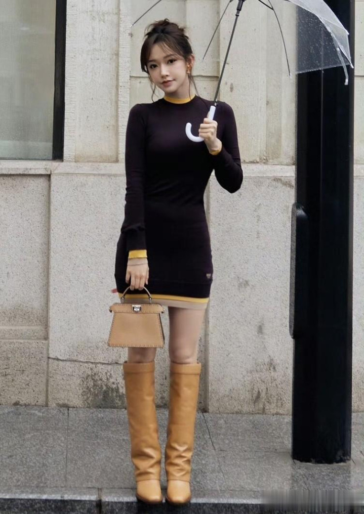 思象一下,程潇迈着自信按次,短裙跟着来去轻轻激越,棕色高跟靴在阳光下精明着光芒,既展现出仙女的甜好意思可儿,又散漫着寂寥女性的洒脱气质。这造型太绝,前卫感径直拉满,谁看了不说一句程潇是前卫凫水儿!
